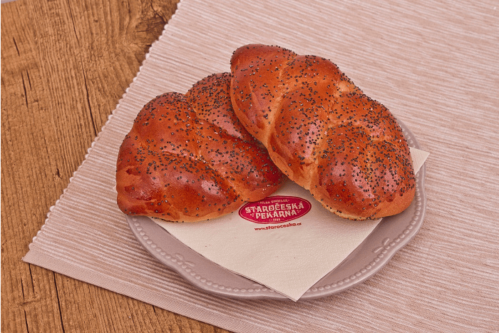 Ručně pletená houska ze sladkého kynutého těsta, sypaná mákem.