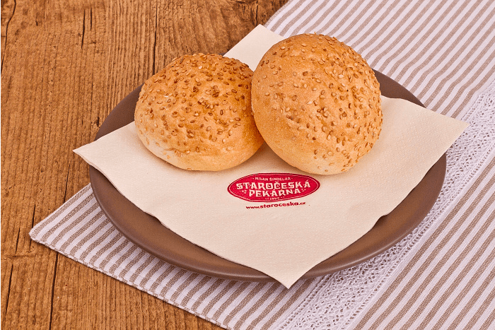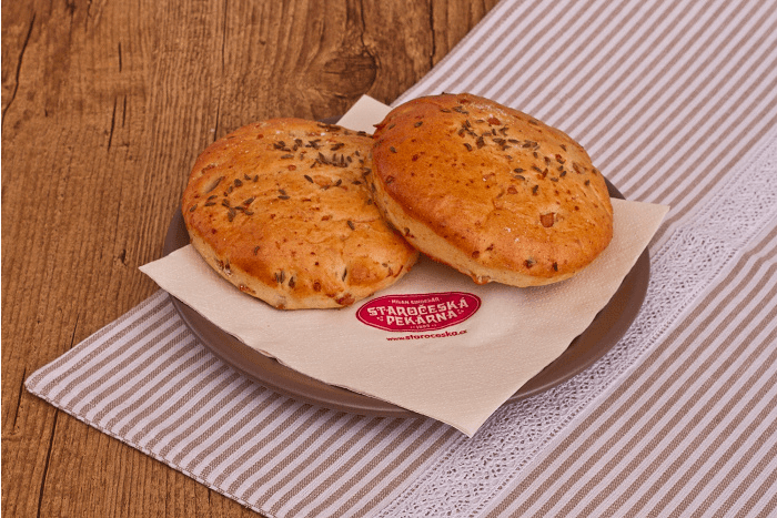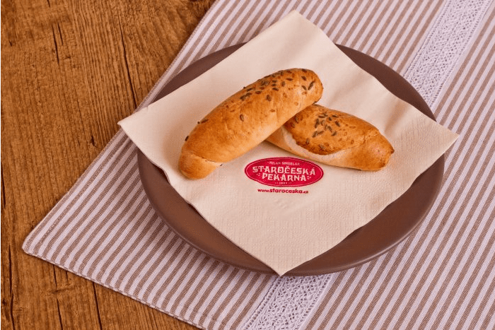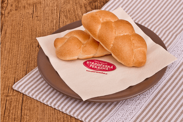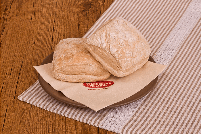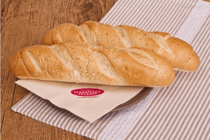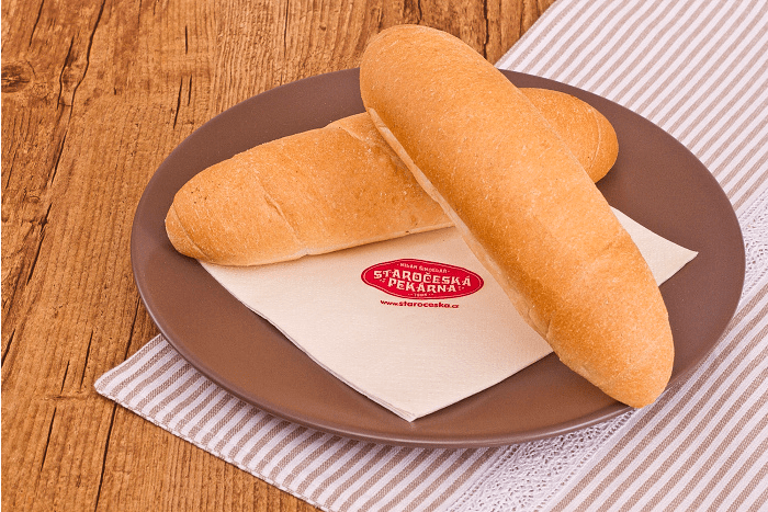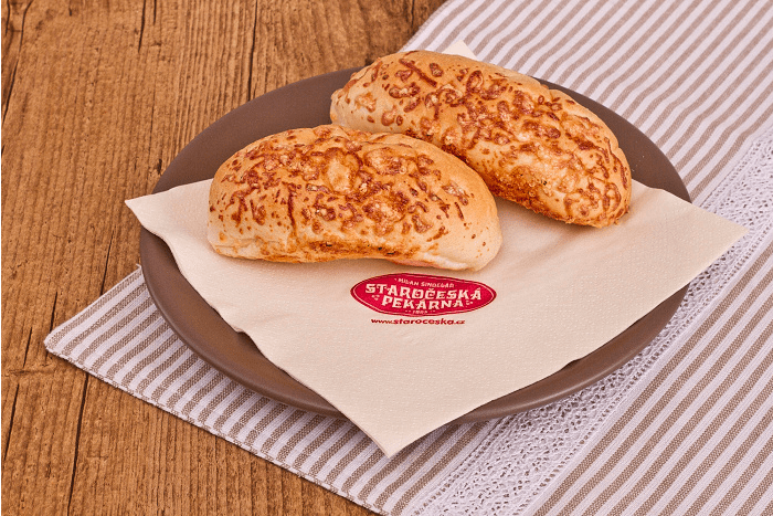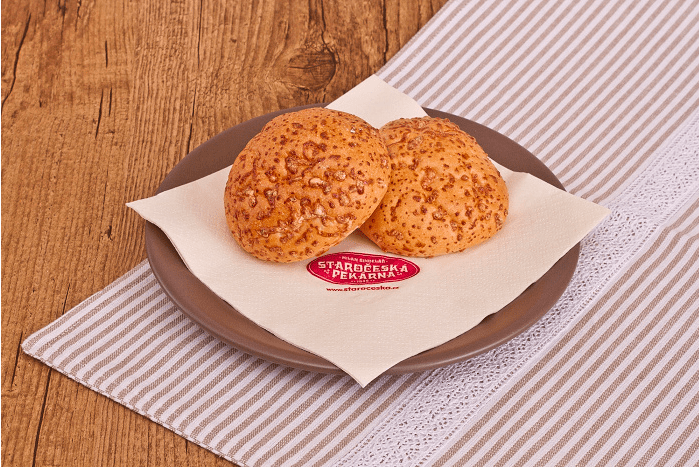 SLANÉ Menu Chléb Pečivo Vícezrnné Slané Koblihy Sladké kynuté Linecké a třené Listové těsto Plundrové těsto Sladke Lahůdky Chlebíčky a jednohubky Obložené pečivo Speciality Velikonoce Vánoce Bageta střední sezamová 120gObj.č. – 620 Slané pečivo sypané sezamem (pšeničná mouka, sezam, mléko). Banketka bulka 20gObj.č. – 94 Pšeničná mouka, mléko, sezam. Banketka bulka sýr 20gObj.č. – 95 Slané pečivo sypané sýrem. Houska pletená velká 110gObj.č. – 610 Sypané nebo nesypané mákem; pšeničná mouka, mléko. Banketka houstička 20gObj.č. – 69 Slané pečivo sypané mákem, kmínem a solí nebo sezamem. Banketka rohlíček 20gObj.č. – 68 Slané pečivo. Banketka rohlíček sýr 20gObj.č. – 56 Slané pečivo sypané eidamským sýrem. Ciabatta kostka 70gObj.č. – 625 Světlé pšeničné pečivo italského typu (pšeničná mouka). Houska ražená 50gObj.č. – 63 Slané pečivo sypané kmínem a solí. Párkový rohlík 60gObj.č. – 161 Slané pečivo vhodné na párek v rohlíku. Rohlík 45gObj.č. – 61 Slané pečivo sypané kmínem a solí. Škvarková placka 60gObj.č. – 612 Slané pečivo se škvarky, sypané kmínem. Václavská bageta 95gObj.č. – 1610 Slané pečivo, velikost bagety 22cm.